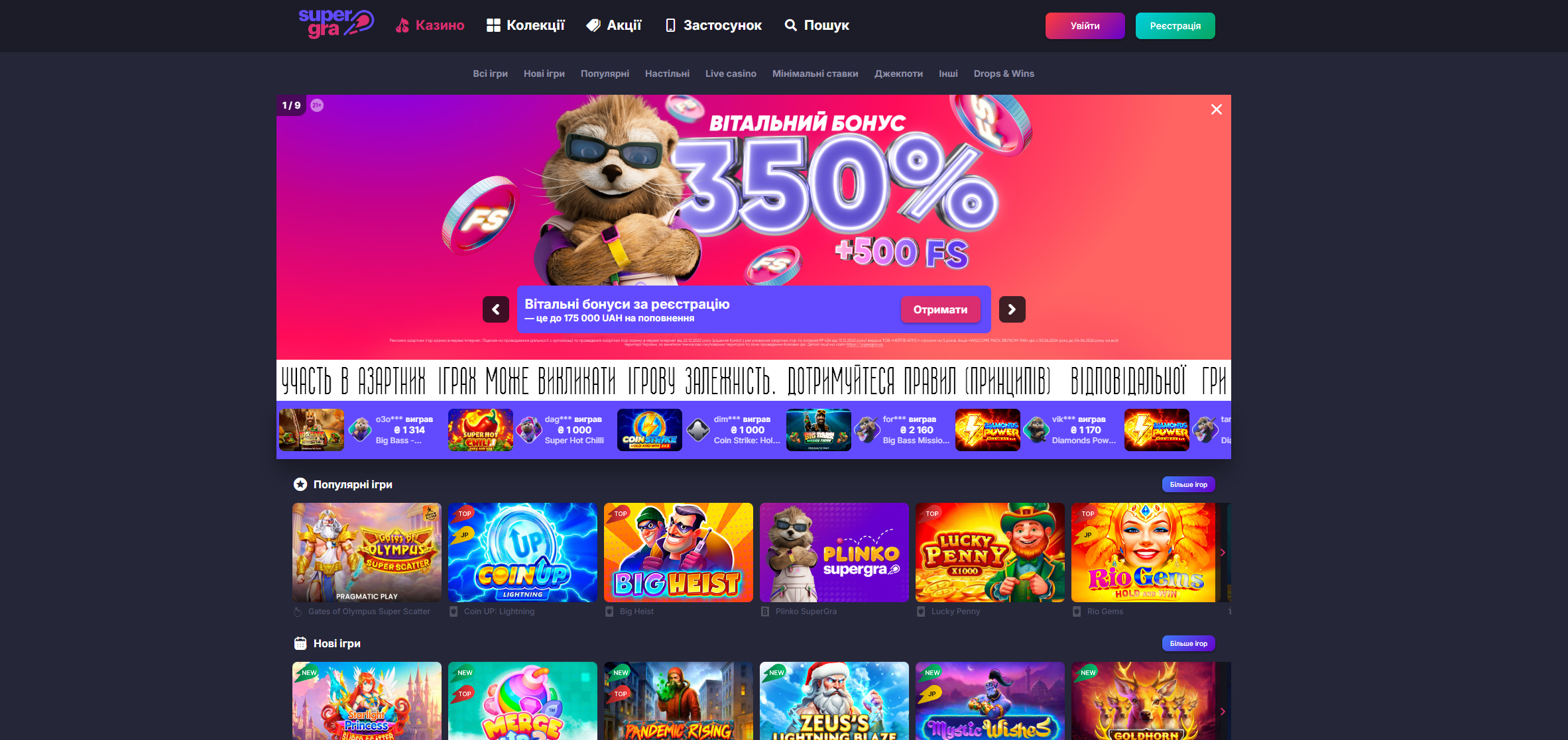 З іншого боку, будь яка супергра на гроші завжди пов'язана з ризиками. Тут є і вітальний бонус, і промо, і акції для постійних гравців, але кожен депозит, кожна ставка і кожен спін в Supergra casino можуть як принести виграш, так і забрати банкрол. Тому далі ми розберемо, що пропонує це онлайн казино, які тут є ігри, бонуси, мінімальний депозит, як працюють поповнення та виплати в UAH, і де в усьому цьому місці відповідальна гра.